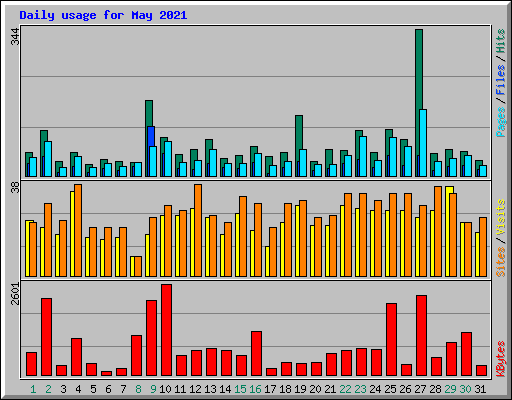 | Day | Hits | Files | Pages | Visits | Sites | KBytes | ||||||